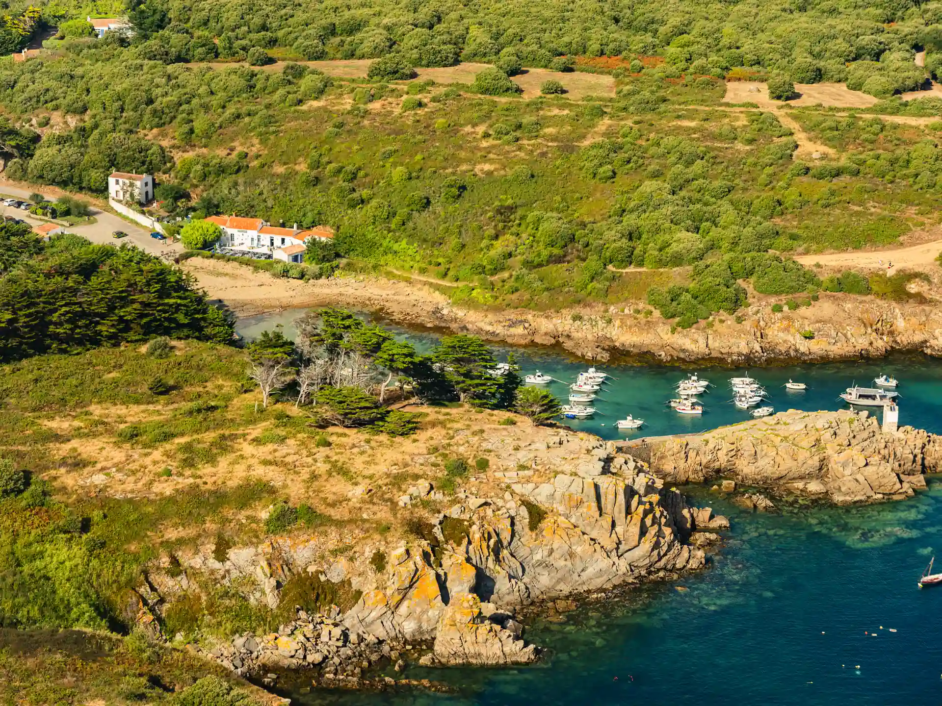 Au large des côtes vendéennes, l’Île d’Yeu est une escapade incontournable pendant votre séjour. Accessible en bateau depuis Fromentine ou Saint-Gilles-Croix-de-Vie, elle séduit par ses criques sauvages, ses falaises, ses plages de sable fin et son charmant port de la Meule.